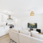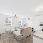 The standout feature is the bright and airy reception room that seamlessly combines a modern kitchen and lounge area. The south-facing aspect ensures that the space is flooded with natural light, creating a warm and inviting atmosphere throughout the day. The kitchen is well-equipped, making it ideal for both cooking and entertaining.